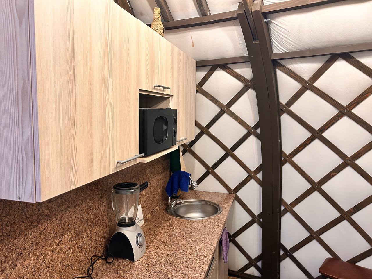 Изначально у нас был только мини-отель из кирпича. Но потом мы придумали интересное решение, чтобы люди почувствовали себя ближе к природе и имели возможность пожить как настоящие кочевники. И мы построили юрту.